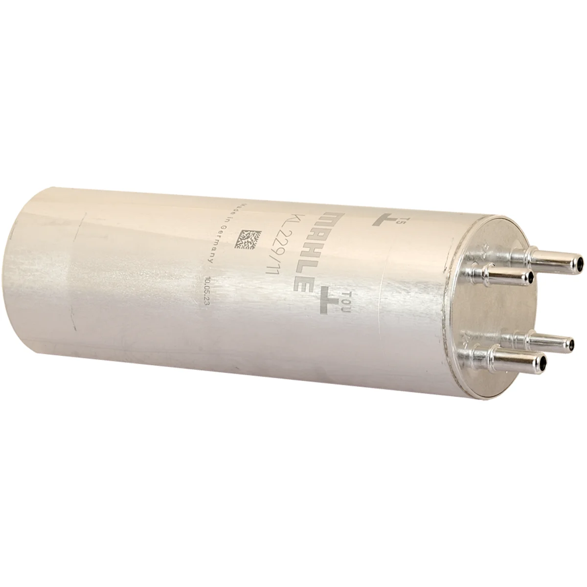 Polttoainesuodatin Mahle Original In-Line Filter, Sisääntulon Ø 10mm, Ulosoton Ø 9,9mm. Korkeus 276,2mm, Läpimitta 80,65mm.