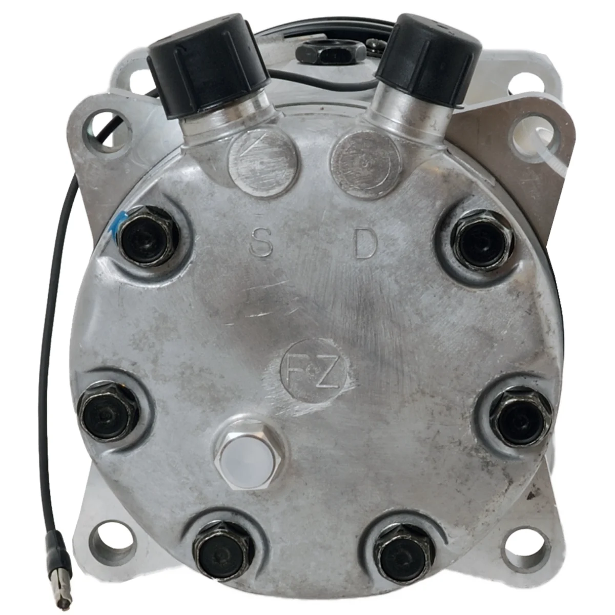 Ilmastokompressori Univ.Sanden 12V 12V, Hihnapyörä UD 125mm, 2 uras, 4 kiinnitysluotetta Öljymäärä: 140ml. PAG 100. SD5H11 tyyppi Soveltuu mm. New Holland Boomer Traktoreihin